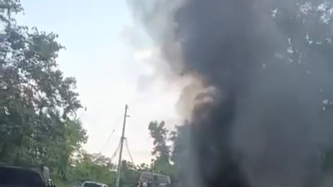 Un vehículo fue incinerado en la vía Tibú-La Gabarra. Foto: Cortesía.