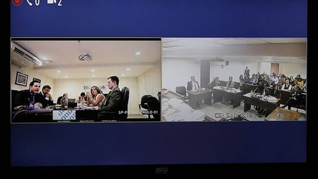 Los brasileños Luiz Antonio Bueno, Luiz Mameri, y Luiz Eduardo Da Rocha Suárez participan, vía videoconferencia, en el juicio que se sigue contra José Elías Melo por el caso Odebrecht.. Foto: Colprensa(Thot)