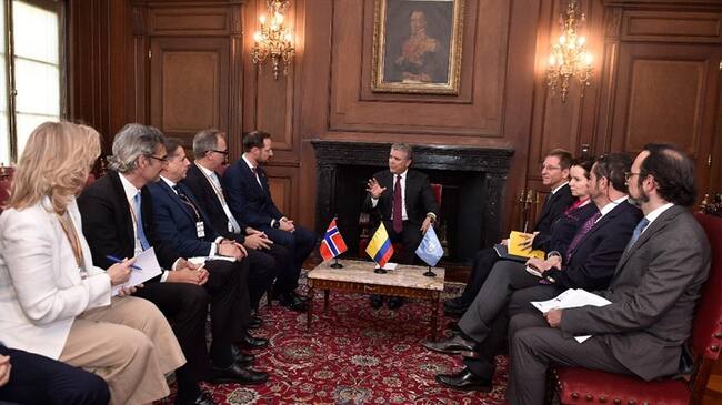 El príncipe de Noruega Haakon Magnus luego de reunirse con varias víctimas del conflicto armado y haber escuchado cada uno de sus testimonios asistió a una reunión con el presidente Iván Duque donde le manifestó su admiración por lo logros significativos que el país ha logrado luego de la firma del proceso de paz.