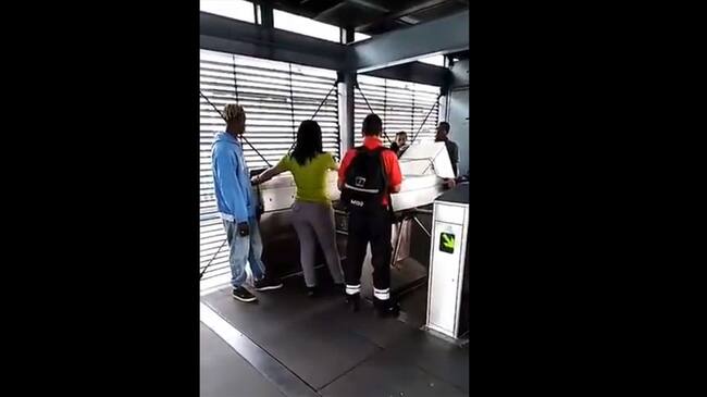 En la estación calle 22, en la troncal Caracas sucedió un insólito caso que se ha vuelto viral. Unos usuarios de Trasmilenio ingresaron una nevera al sistema.