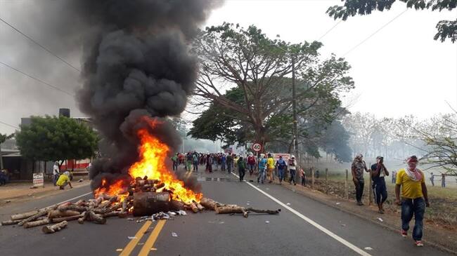 En las últimas horas los campesinos del sur de Córdoba se tomaron la troncal de occidente con la quema de árboles que impiden el paso por la ruta Medellín-Montería.