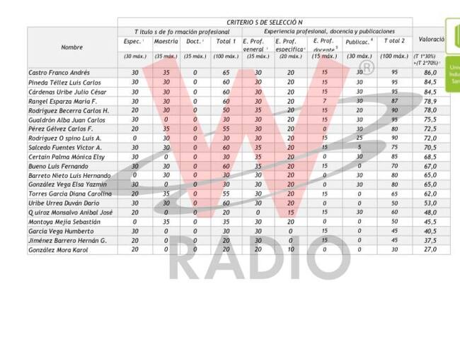 La W conoció la lista que publicó la Universidad Industrial de Santander de los candidatos habilitados, tras evaluar sus hojas de vida, en el marco de la convocatoria para elegir al Contralor General de la República que estará en el período 2022-2026.