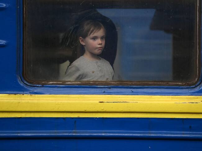 Niña en tren en Lviv, Ukraine (Photo by Daniel LEAL / AFP) (Photo by DANIEL LEAL/AFP via Getty Images) / DANIEL LEAL
