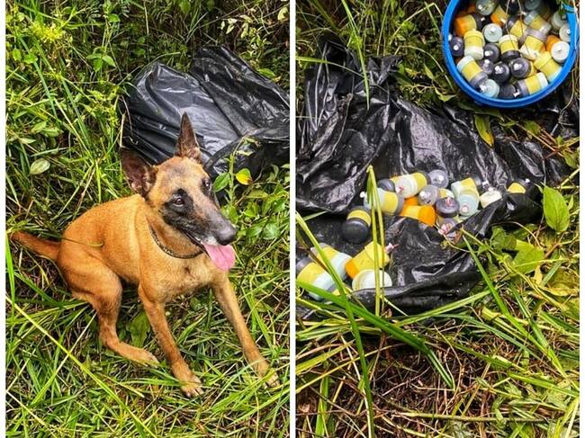 Un canino antiexplosivos encontró las minas en zona rural. Crédito: Policía Cauca