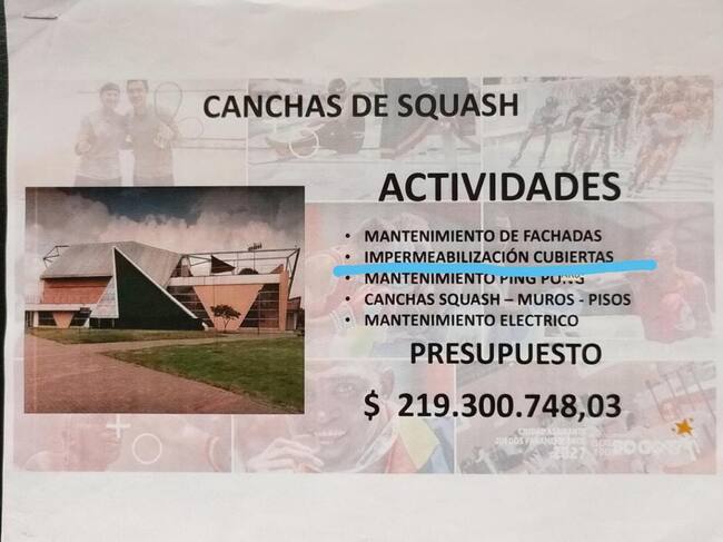 Cabe destacar que dichas obras estaban incluidas en el proyecto de arreglos que aprobaron para las canchas de squash por 219 millones de pesos en el contrato 048 de 2021.