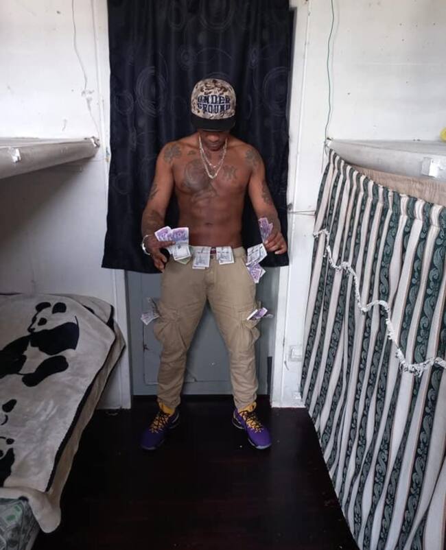 En las imágenes publicadas por alias ‘Bayron’ en redes sociales se observan fajos de billetes de 100.000 y 50.000 pesos, además de cajas de aguardientes, celulares y cigarrillos de marihuana.