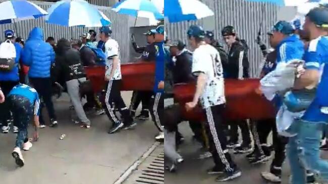 Recientemente, un video que circula en redes sociales revela a miembros de la barra de Millonarios, conocidos como los ‘Comandos Azules’, llevando un ataúd con un cuerpo al estadio Nemesio Camacho El Campín.
