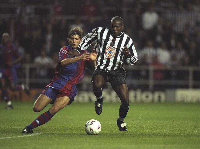 Faustino Asprilla en Newcastle contra Barcelona el 17 de septiembre de 1997. Foto: Stu Forster/Allsport / Stu Forster