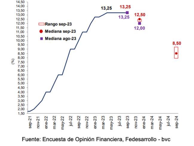El viernes 29 de septiembre la junta del Banco de la República se reunirá para tomar alguna decisión sobre las tasas de interés. Al respecto, los analistas de Fedesarrollo y la Bolsa de Valores de Colombia esperan que no se modifique la tasa de intervención, es decir, que se mantenga en 13,25% en septiembre, a pesar del llamado del Gobierno, Asobancaria y la Andi.