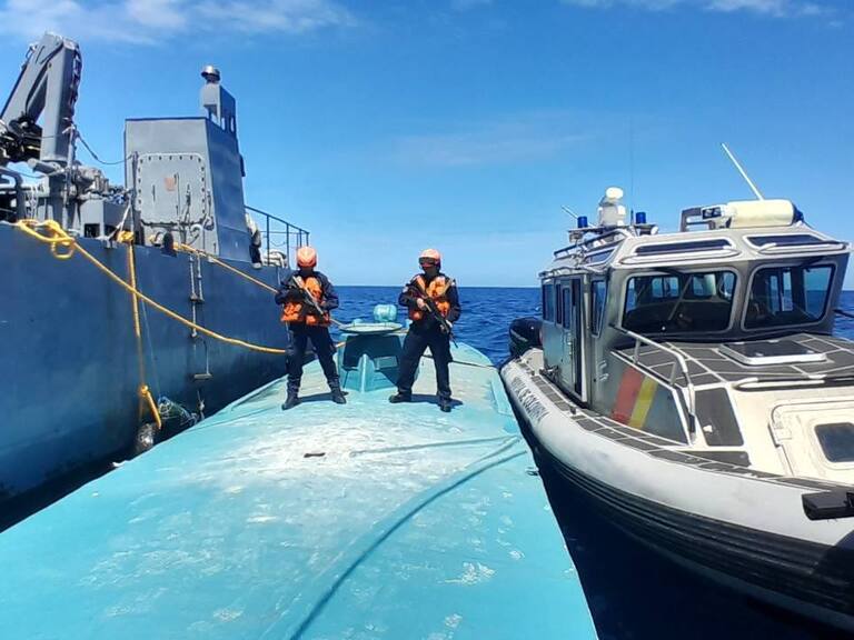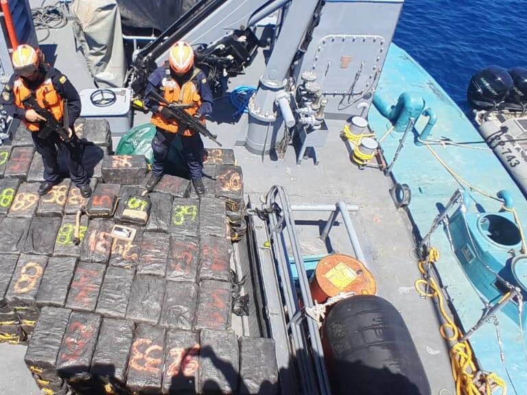 “Esta operación se desarrolló de manera combinada con la Armada del Ecuador, que también participaba en la operación de búsqueda y rescate, la cual realizó seguimiento al artefacto ilegal después de su detección cuando navegaba en zona limítrofe. Las unidades de la Armada de Colombia realizaron el procedimiento de interdicción marítima, encontrando cuatro sujetos y 205 bultos de diferentes tamaños y formas”, dijo la Armada.