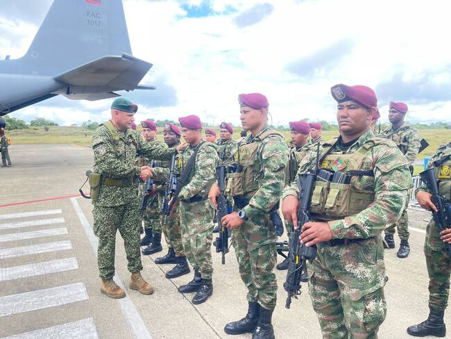 En total, 160 efectivos del Batallón de Fuerzas Especiales Antiterroristas Urbanas Número 7, del Gaula Militar y de la Infantería de Marina arribaron a la capital chocoana para, de acuerdo con las Fuerzas Militares, “apoyar y fortalecer la estrategia de seguridad diseñada para atacar y debilitar a las diferentes estructuras criminales” del Pacífico.