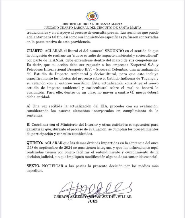 El juez aclaró que la Agencia Nacional de Licencias Ambientales (ANLA) “está en la obligación” de realizar el estudio en el que deberán participar Ecopetrol y Petrobras.