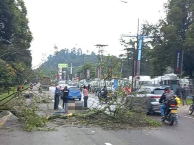 Un motociclista murió tras caerle un árbol en la Autopista Norte de Bogotá. Foto: suministrada