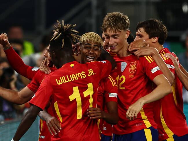 El equipo español se impuso con goles de Nico Williams y Mikel Merino en la primera parte y dos de Lamine Yamal, uno de penalti, y otro de Pedri en el segundo tiempo que situaron a la selección de Luis de la Fuente con una ventaja de 4-0.