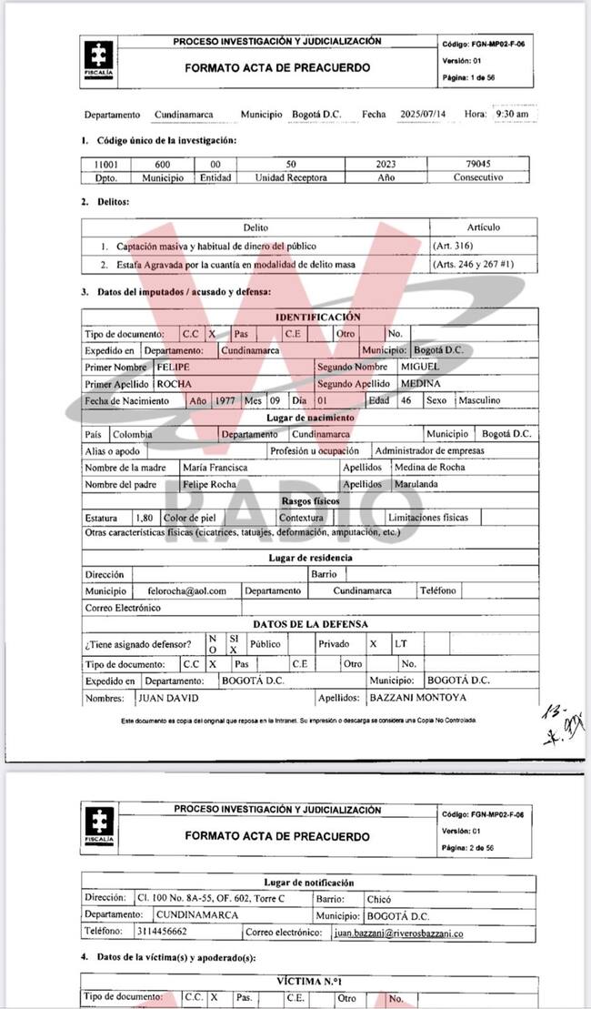 Este es el preacuerdo que Felipe Miguel Rocha Medina suscribió con la Fiscalía: