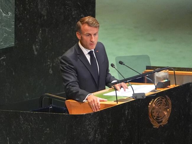 Emmanuel Macron en la Asamblea General de la ONU en Nueva York. FOTO: Selcuk Acar /Anadolu vía Getty Images / Anadolu