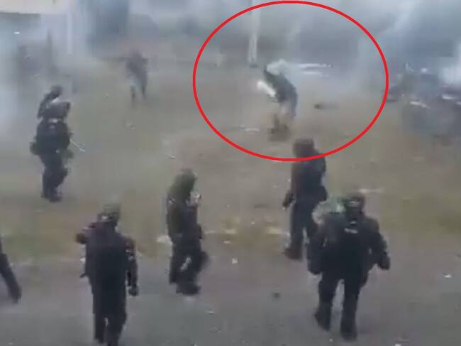 En video se evidenció el momento en donde cae, luego de recibir este golpe, enseguida, un uniformado del Esmad lo golpea con el pie en la cabeza, y en otra pieza audiovisual, muestra cómo es arrastrado por el escuadrón para ser trasladado a un centro asistencial.