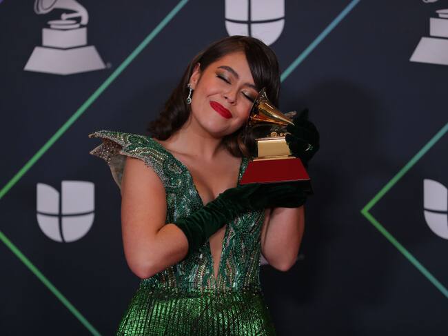 LAS VEGAS, NV - NOVEMBER 18: Colombian singer Juliana Velasquez poses with her Latin GRAMMY Award for Best New Artist in the press room during the 22nd Annual Latin GRAMMY Awards at MGM Grand Garden Arena on November 18, 2021 in Las Vegas, Nevada. (Photo by Omar Vega/FilmMagic) / Omar Vega