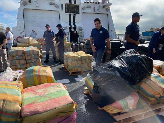 Hansel Pintos, oficial de asuntos públicos de la Guardia Costera, aseguró en La W que en total fueron 26.250 libras de cocaína y otras 3.700 de marihuana las que fueron decomisadas. También reveló que el operativo se realizó en aguas internacionales del Pacífico.