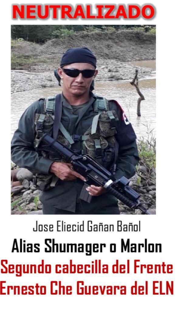 “Continuamos propinando contundentes golpes contra los cabecillas del Frente Occidental del ELN. Primero fue alias el ‘Viejo’, luego alias ‘Fabián’ y ahora alias ‘Shumager’, que delinquían en el departamento de Chocó y que buscaban, con su accionar, expandirse”, dijo el ministro.
