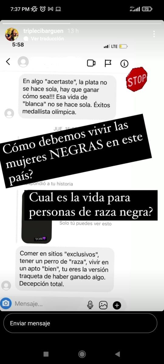 Las palabras de esta persona generaron indignación de Caterine Ibargüen que decidió exponer el chat con esta persona.