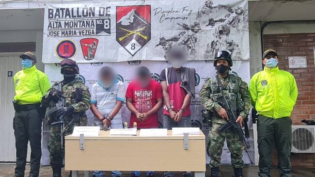 Junto a alias ‘Yony’ también fueron capturados alias ‘Kevin’ y alias ‘El Perro’. Crédito: Ejército Nacional.