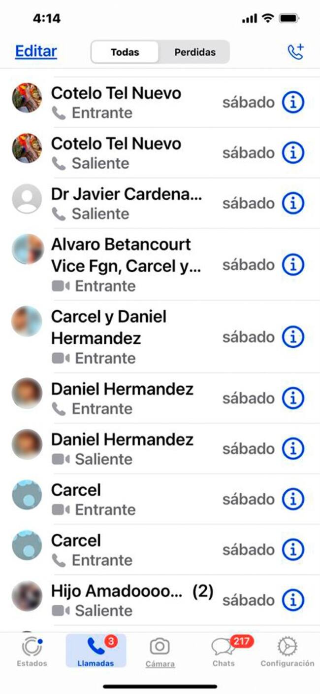 El Reporte Coronell tiene fotos de la pantalla del celular de la fiscal Vanegas que muestran que ese sábado ella recibió inicialmente una llamada convencional de un teléfono identificado como “Cárcel”. Después una videollamada también desde cárcel. Enseguida llamó por video al fiscal Daniel Hernández. Luego le entró una llamada de audio de Hernández. Posteriormente ella armó una videoconferencia entre cárcel y Hernández a la que sumaron al fiscal Álvaro Betancur. Terminada la videoconferencia quedó registrado que llamó a su superior jerárquico el fiscal delgado ante la Corte Javier Cárdenas.
