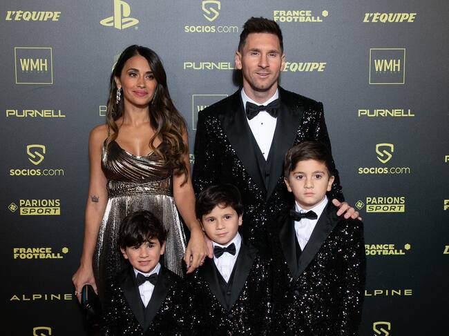 Lionel Messi, Antonella Roccuzzo, Thiago Messi, Mateo Messi Roccuzzo and Ciro Messi Roccuzzo en la gala del Balón de Oro 2021 / MARC PIASECKI/GETTY IMAGES