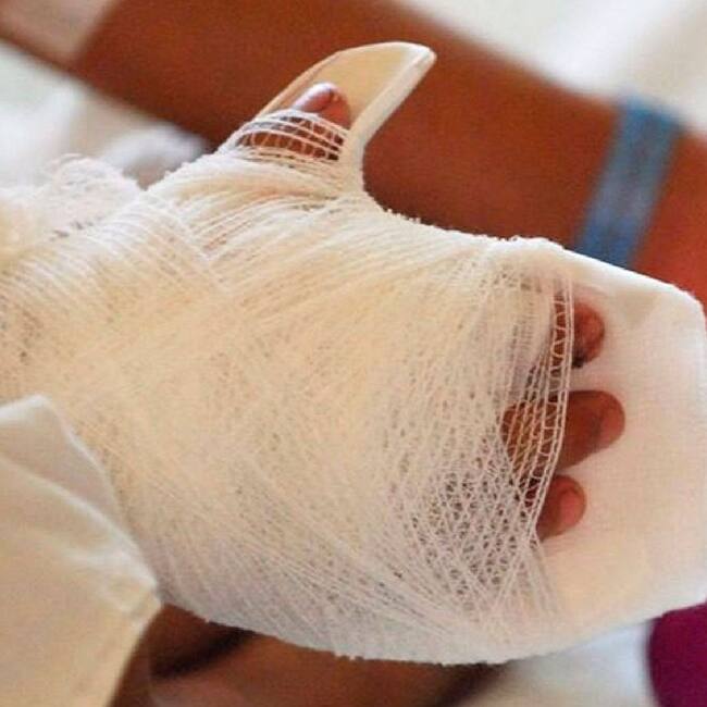 "Tenemos un niño, nos llegó hace unos días, está en el hospital Internacional de Colombia, un tote que el estalló en su manita izquierda, tuvo quemaduras de segundo y tercer grado y fracturas".
