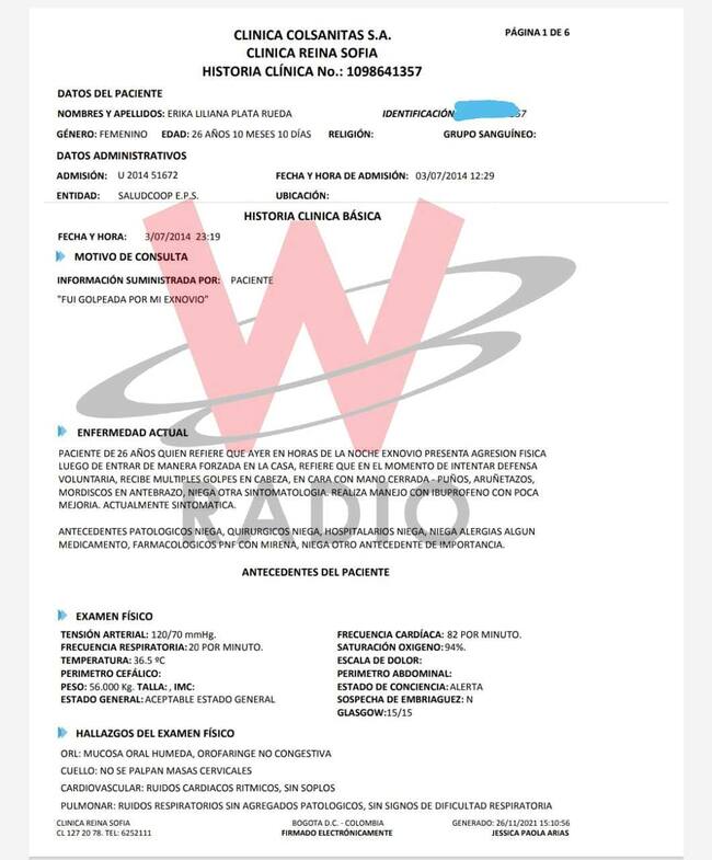 Erika le contó a la W que su relación comenzó a tornarse violenta cuando sospechó que el doctor Figueredo seguía casado a pesar de que él le aseguraba que no.