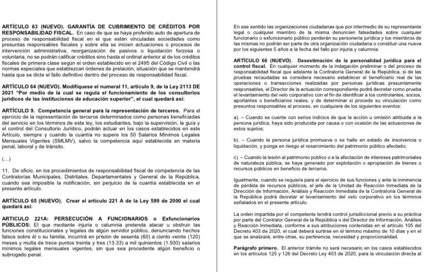 Antes de que el proyecto llegara a la Cámara de Representantes, 12 senadores firmaron una proposición para incluir el artículo que castigaba hasta con 10 años de cárcel y hasta con $1.000 millones a quienes denunciaran hechos falsos contra funcionarios públicos y sus familias.