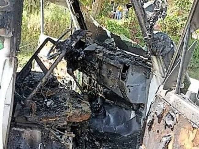 Sujetos armados incineraron un vehículo de transporte público en El Tambo, Cauca