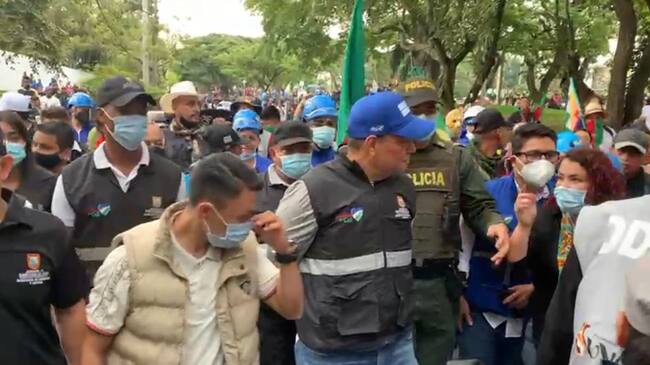 Agreden al Secretario de Seguridad de Cali durante manifestaciones de la minga