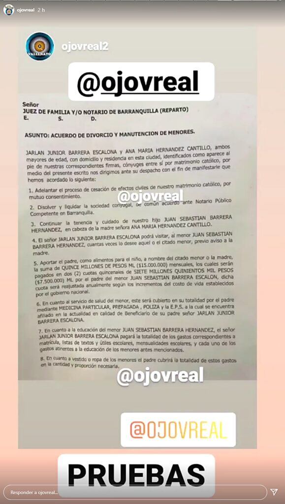 Documento de divorcio Jarlan Barrera. Foto: @Ojovreal