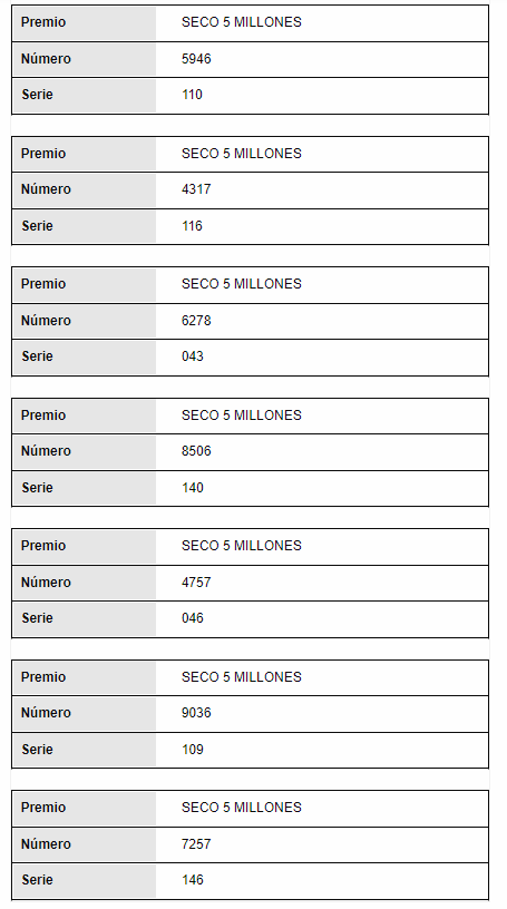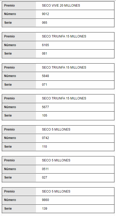Consulte a continuación el resultado de los demás premios de la Lotería del Tolima: