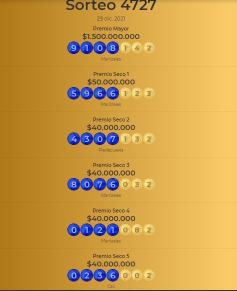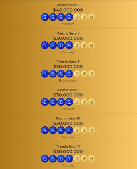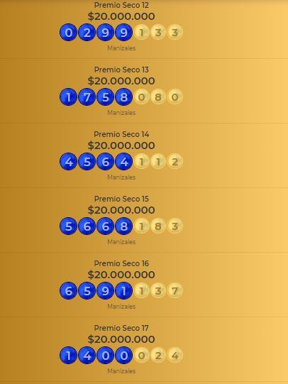 Consulte a continuación el resultado de los demás premios de la Lotería de Manizales: