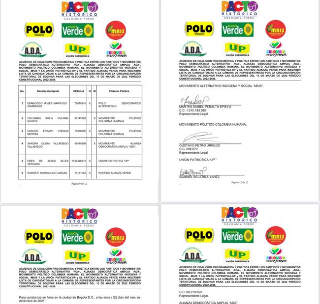 Sin embargo, en la sección de ‘En Kamila de 11 varas’ se reveló que la firma de Petro aparece en el acuerdo que firmaron varios partidos y movimientos, el pasado 12 de diciembre, para inscribir la lista de candidatos por Bolívar.