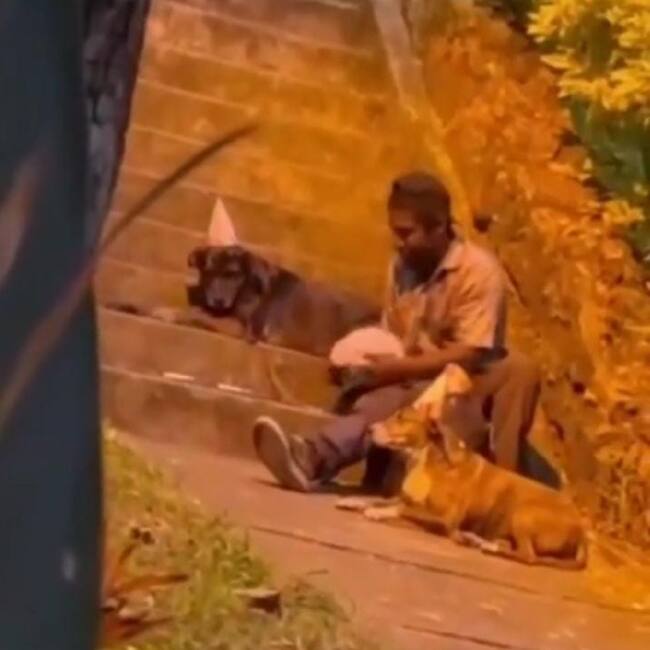 Conmovedor video de habitante de calle celebrando el cumpleaños de sus perros