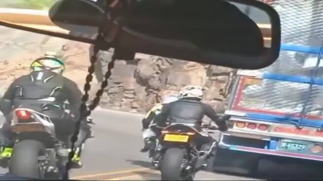 Motociclistas invadieron el carril contrario en vía nacional y estuvieron a punto de ocasionar una tragedia vial.