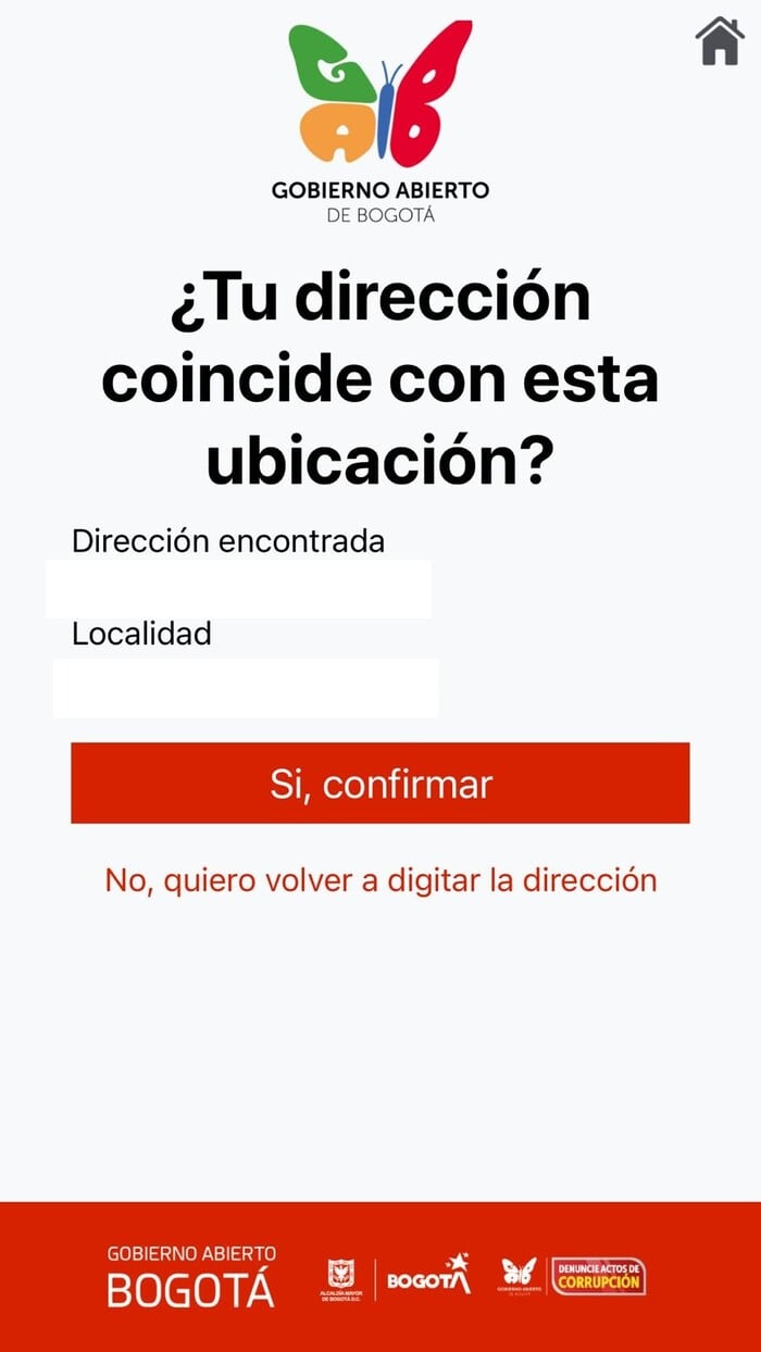 6. Confirme los datos de ubicación y presione el botón que dice “Si, confirmar”.