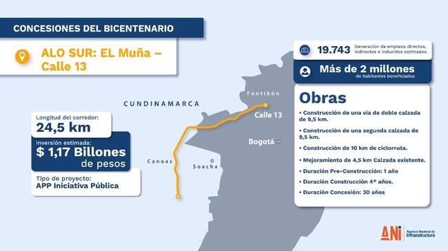 Finalmente, se destacó que la ALO Sur es la segunda iniciativa de las Concesiones del Bicentenario o 5G en ser adjudicada, y que hace parte de la primera ola de 14 proyectos de este tipo a cargo de la ANI.