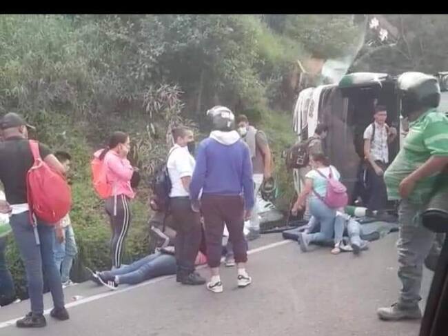 Volcamiento de bus dejó cinco lesionados en la vía Cali - Buenaventura. Foto: Cortesía para Erika Rebolledo