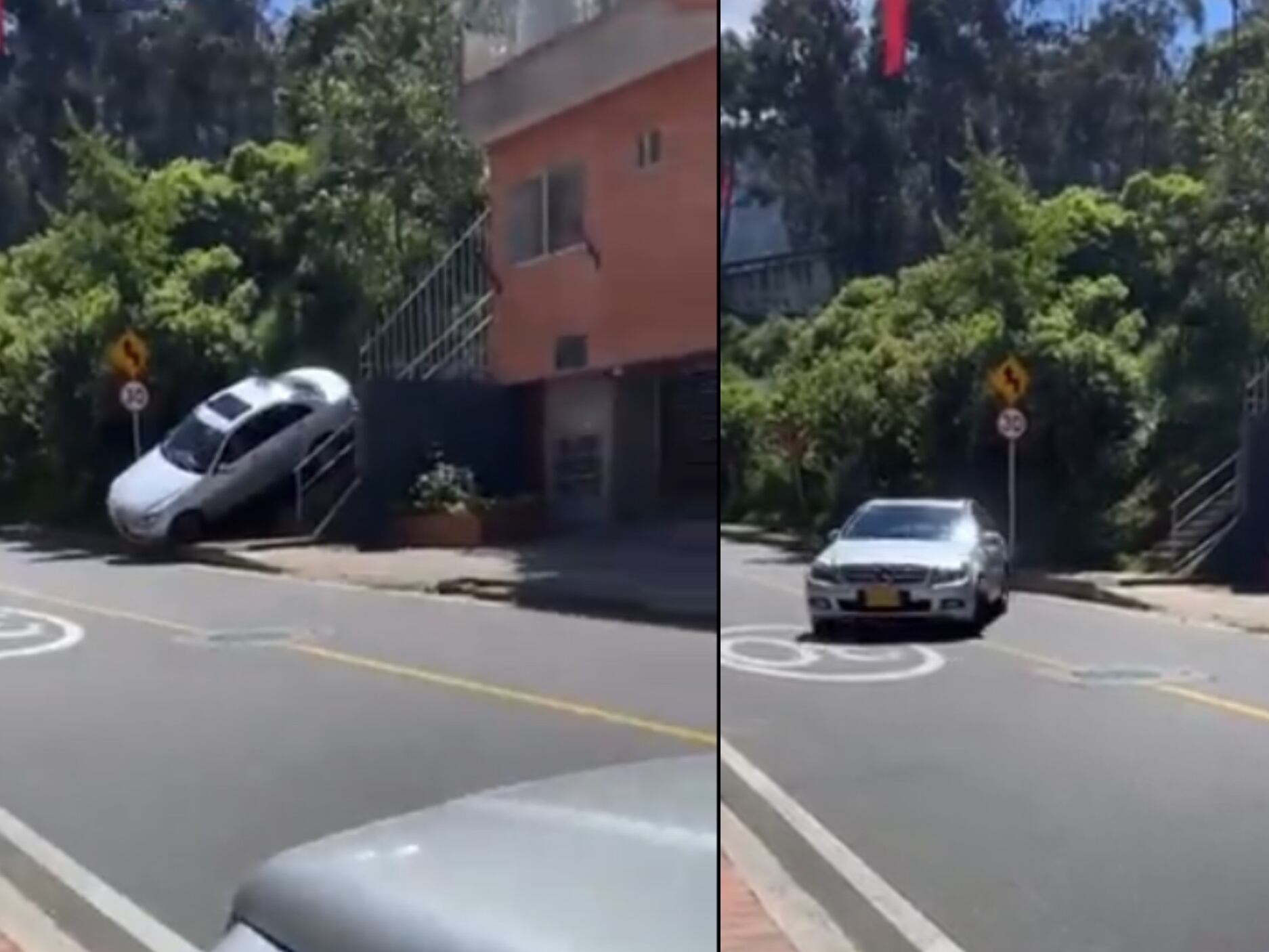 “No me explico, ¿cómo lo hizo?”: carro lujoso bajó por unas angostas escaleras en Bogotá