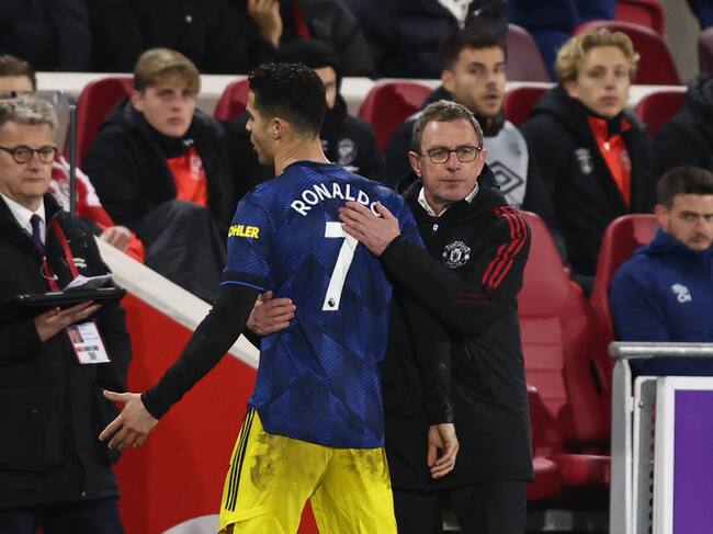 Marcus Rashford anotó el 0-3 al minuto 77 y las cámaras se fueron nuevamente con Cristiano Ronaldo, a quien en ese momento se le podía ver más sereno mientras dialogaba con su entrenador Ralf Rangnick.