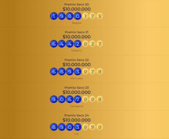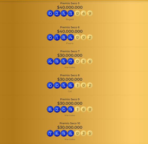 Consulte a continuación el resultado de los demás premios de la Lotería de Manizales: