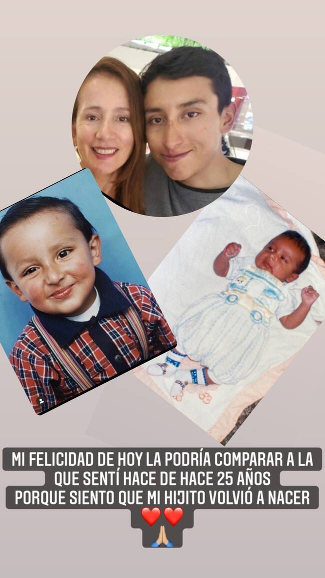 “Mi felicidad de hoy la podría comparar a la que sentí hace 25 años porque siento que mi hijito volvió a nacer”, publicó la mujer en sus historias de Instagram con fotografías de Egan cuando era un niño.
