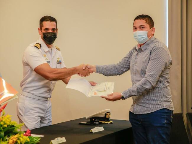 Estos marineros recibieron las certificaciones de la alcaldesa de Santa Marta, Virna Johnson, el capitán de Puertos de Santa Marta, capitán de corbeta Diego Salguero y el director de Fundamar, capitán Carlos Anzola.