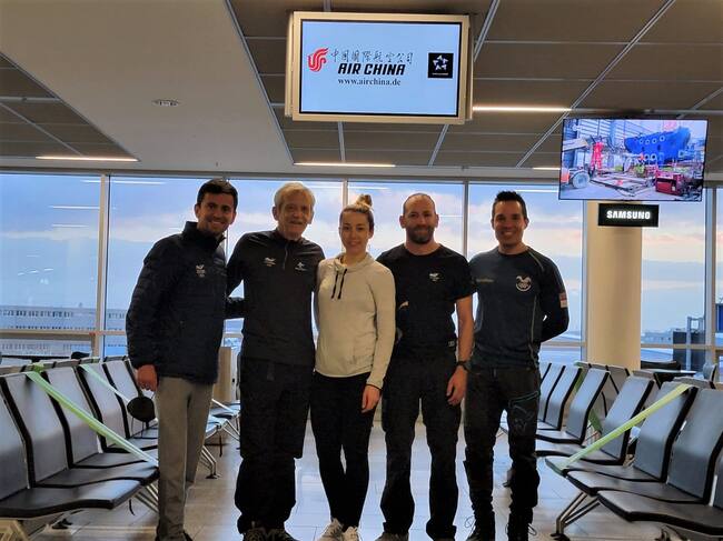 Carlos Quintana (primero de izquierda a derecha), Laura Gómez (centro), Michael Poettoz (extremo derecho) / @OlimpicoCol