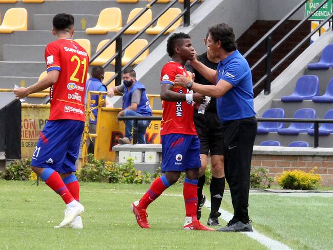 Daniel Quiñones de Deportivo Pasto celebra con el técnico Flabio Torres / Foto: Colprensa / Leonardo Castro / Cont