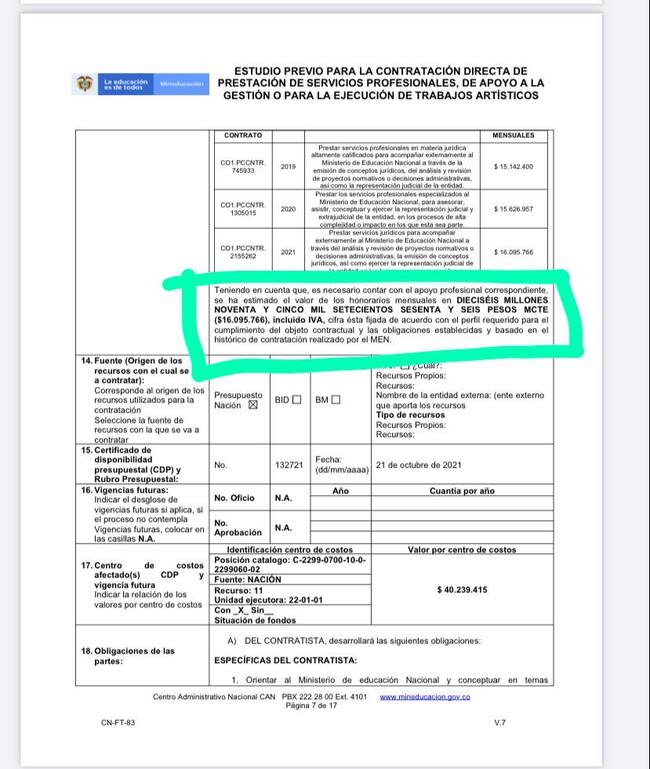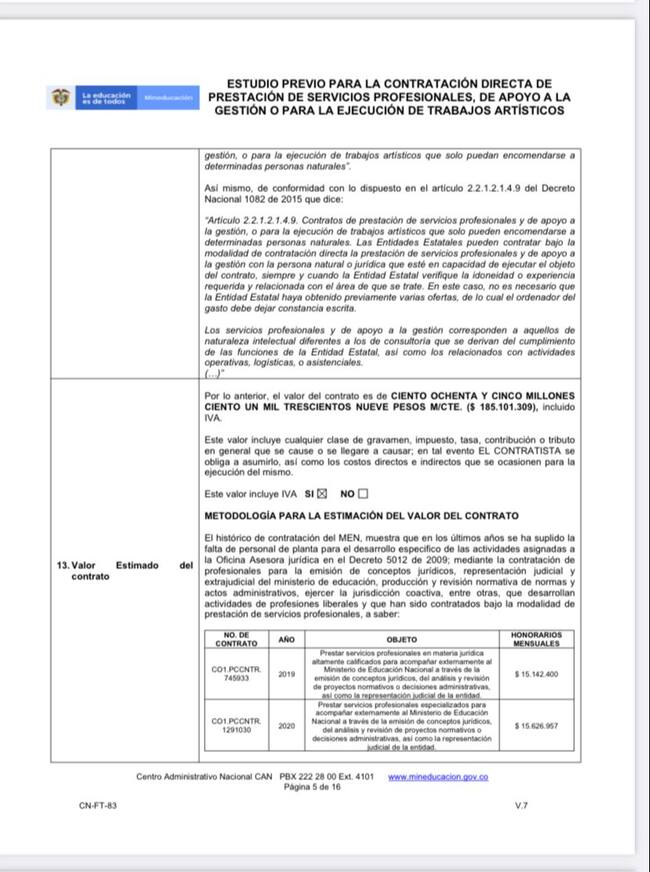 En el caso de Carlos Eduardo Medellín se supo que firmó un contrato con la misma entidad, el Ministerio de Educación de $185 millones.